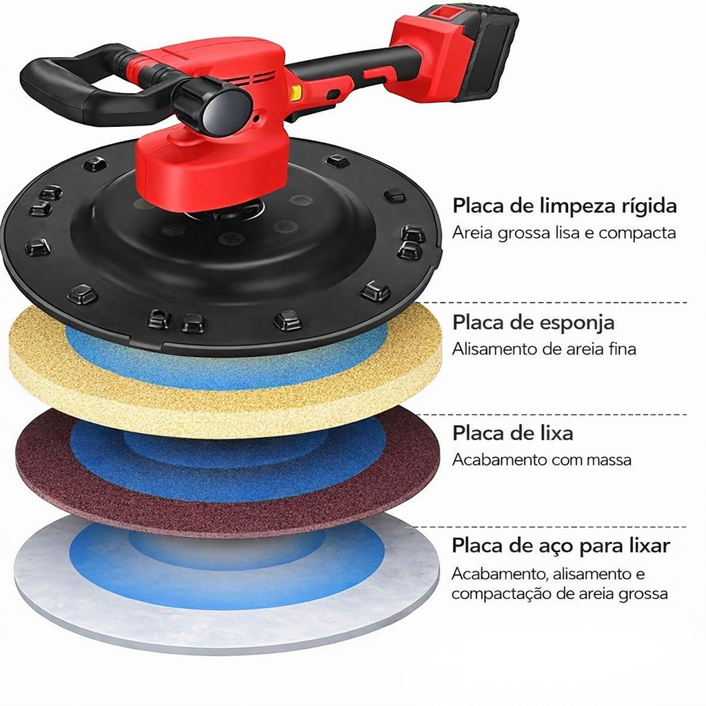 Substitui o alisamento manual tradicional, economizando tempo e proporcionando acabamento uniforme e profissional.